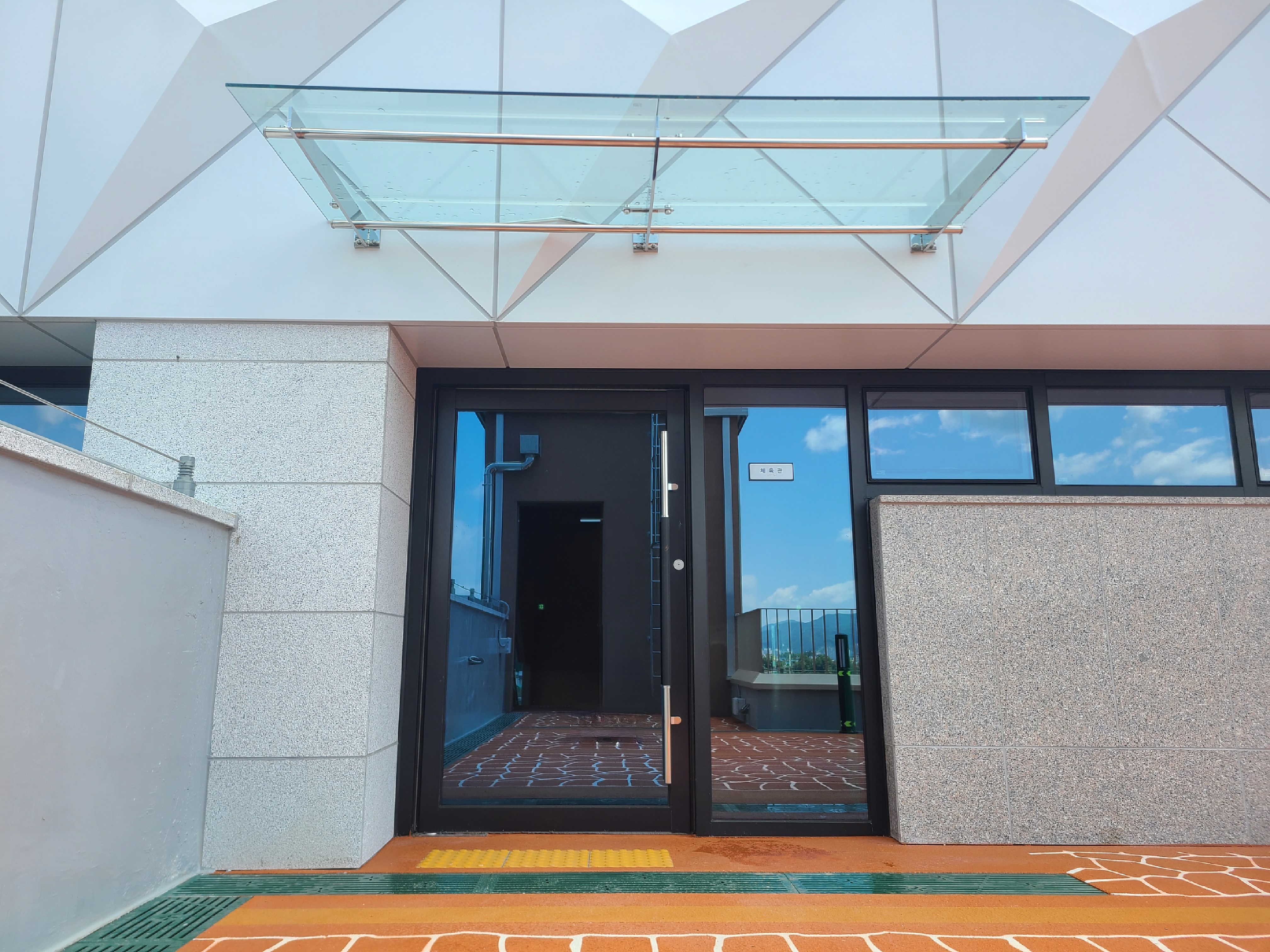 안녕하세요! 오늘은 강화유리를 이용한 캐노피 시공사례를 소개해 드리겠습니다.